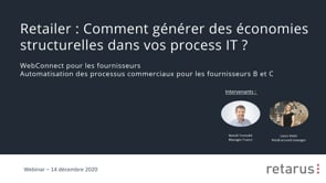 Découvrez lors de notre webinar comment amener en toute simplicité les fournisseurs de niveau B et C à réagir directement à vos commandes. Une réaction immédiate, numérique et prête à être traitée dans votre système. Ne manquez pas la présentation de Benoît Trémolet et Laura Vivier de notre nouveau produit au fonctionnement intuitif : Retarus WebConnect for Supplier. Découvrez la simplicité d’intégration de Retarus WebConnect for Suppliers et les avantages que ce service vous apporte, à vos partenaires commerciaux et vous.