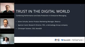 Listen as Spencer Izard, from the IT consulting firm PAC, discusses the importance of trust with Christoph Tockner, CEO of the health tech start-up Novid20, and Sören Schulte, Product Marketing Manager at Retarus. Their conversation focuses on how Novid20 managed the rapid deployment of COVID-19 school testing services and underlines how the secure handling and delivery of messages was pivotal to the project’s success.